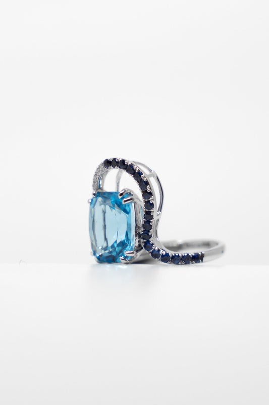 Blue Topaz & Sapphire Asymmetrical Ring