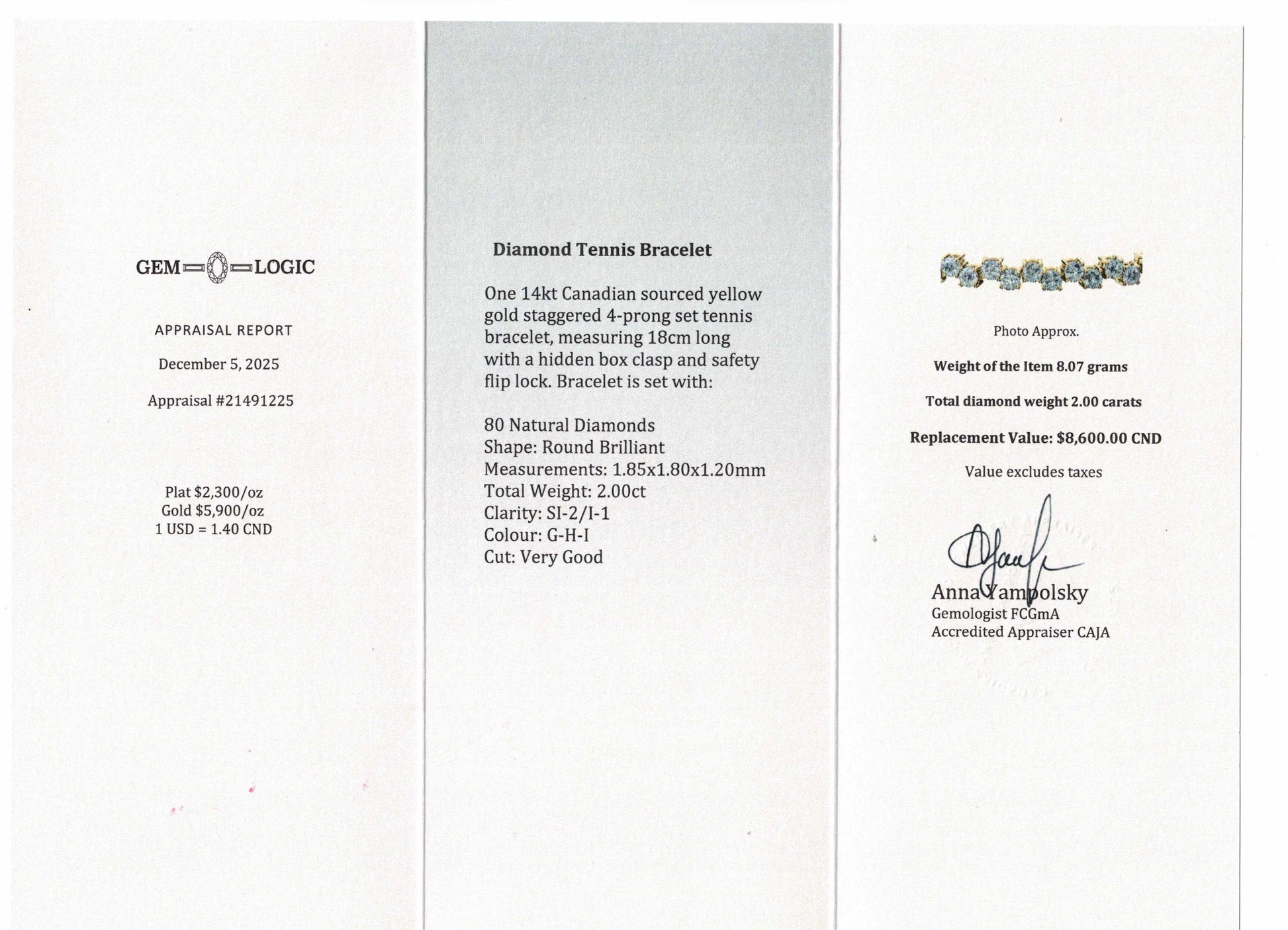- CAJA gemologist appraisal included